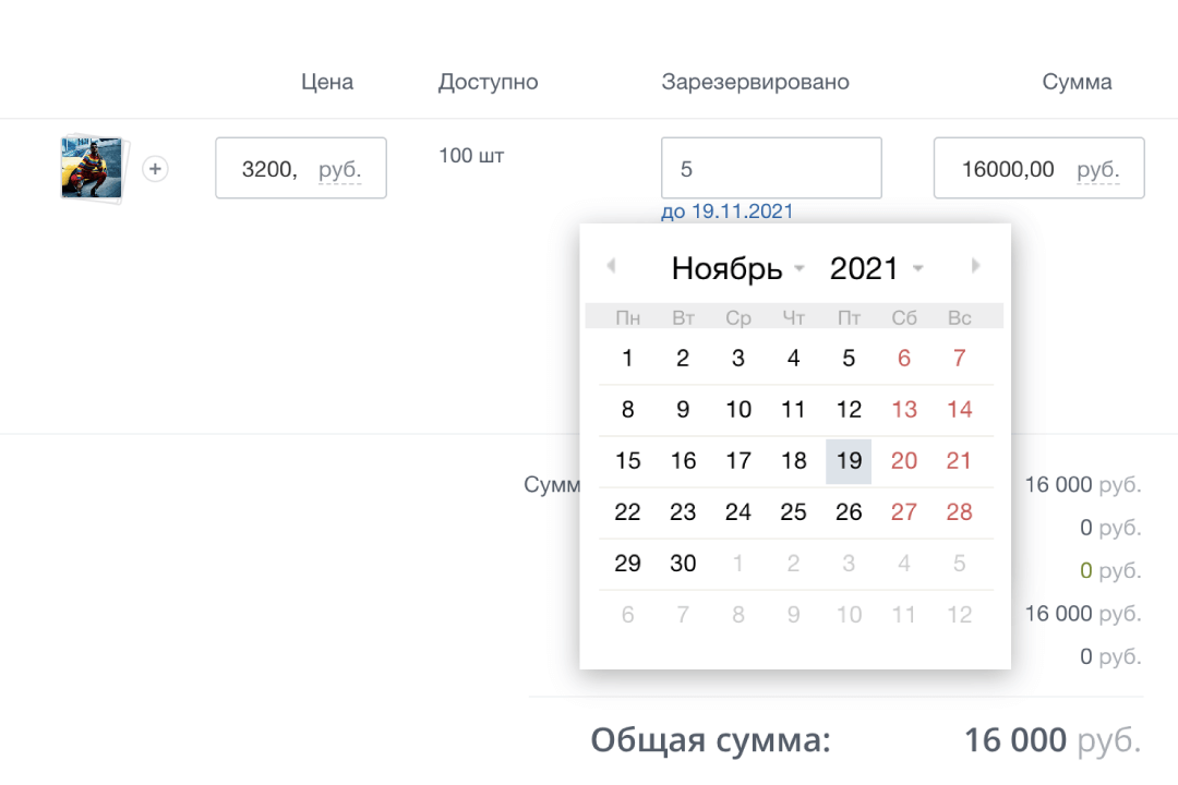 Резервирование товара
