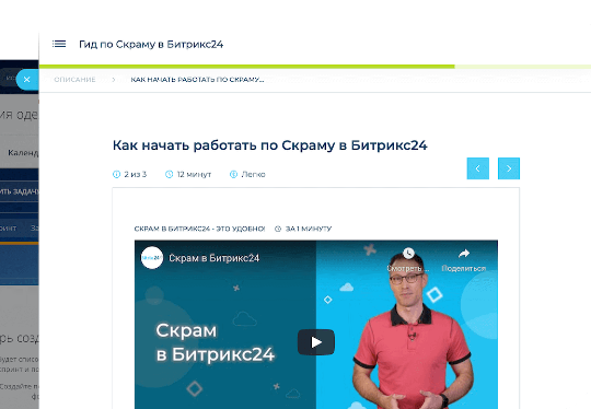 Следуйте за подсказками в Битрикс24.Скрам, чтобы разобраться во всех инструментах.