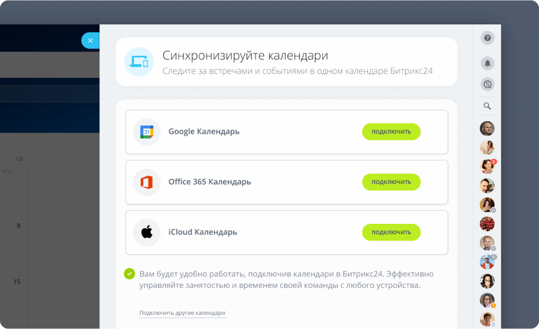 Синхронизация Календаря с iOS, Android и Google Календарем