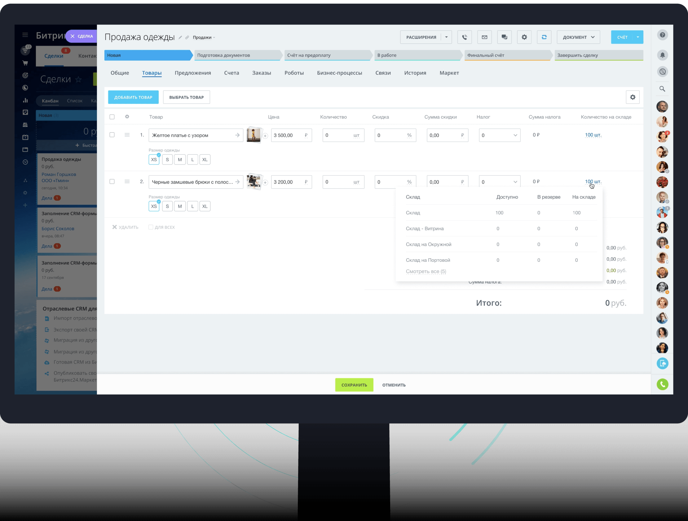 Складской учет знает, сколько продаж было учтено в CRM, и покажет, какие товары нужно докупить.
